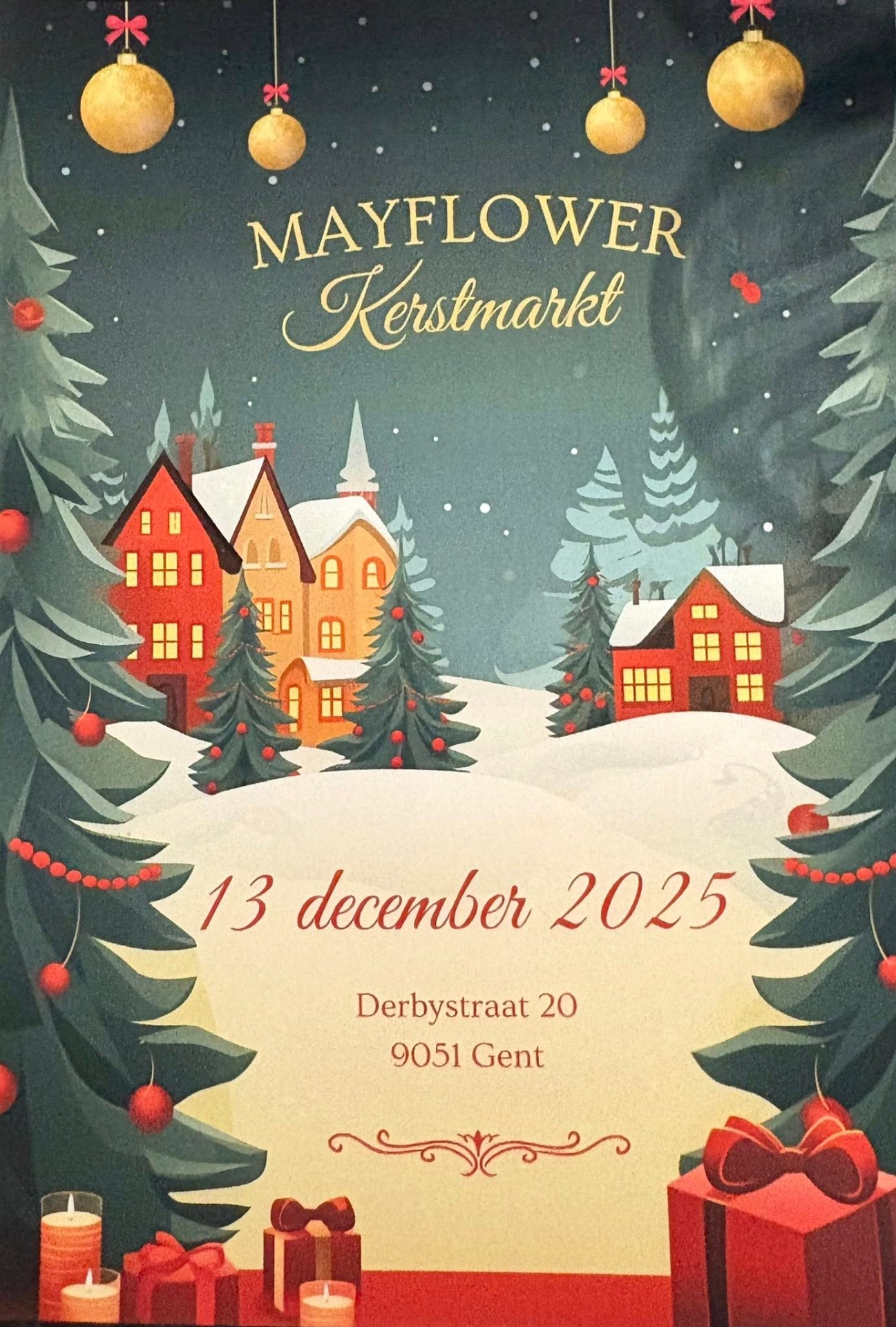 Nog zaterdag 13 december is de jaarlijkse Kerstmarkt in Mayflower. Je vindt er van 14u tot 18u talrijke standjes met kaartjes, geschenken, lekkers en ambachtelijke producten. Bovendien kan je genieten van het aangepaste tearoommenu tussen 14u30 en 17u. Allen daarheen!