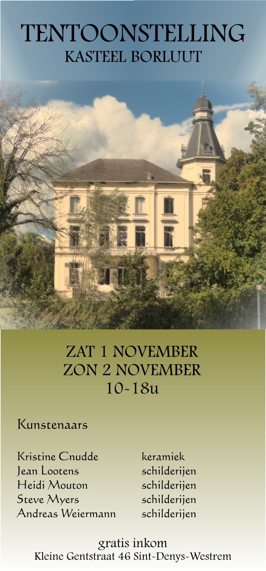 Tijdens het eerste weekend van november stellen volgende kunstenaars tentoon in Kasteel Borluut: